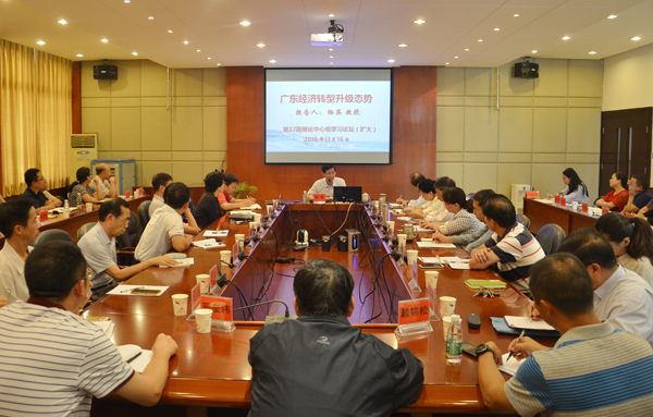 报告会上,杨英教授从广东宏观经济及其转型升级基本背景、基本态势和进一步促进广东经济转型升级的思路三个方面作了深入细致的讲解辅导。