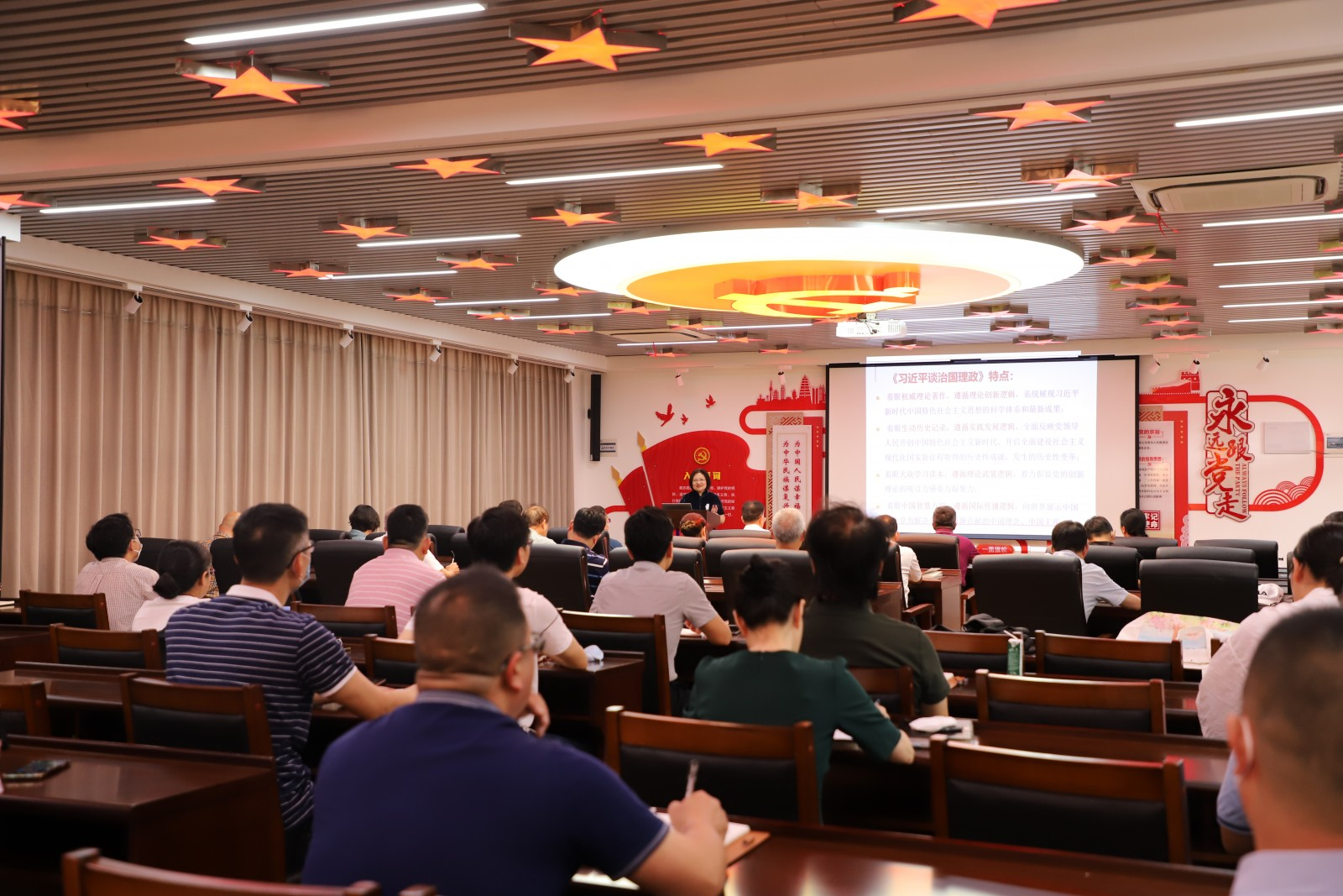 学校邀请暨南大学马克思主义学院程京武院长作专题辅导。程京武教授围绕《习近平谈治国理政》第四卷的框架内容和核心要义从逻辑框架、守正创新、中国智慧三个方面,对《习近平谈治国理政》第四卷进行深入阐释。她重点突出、逻辑严密的讲解,阐述了习近平总书记对新时代重大理论和实践问题的深邃思考,加深了大家对中国之理、中国之路、中国之治的认识,使大家更加理解该书作为全面建设社会主义现代化国家、实现中华民族伟大复兴强大思想武器和科学行动指南的内在逻辑。