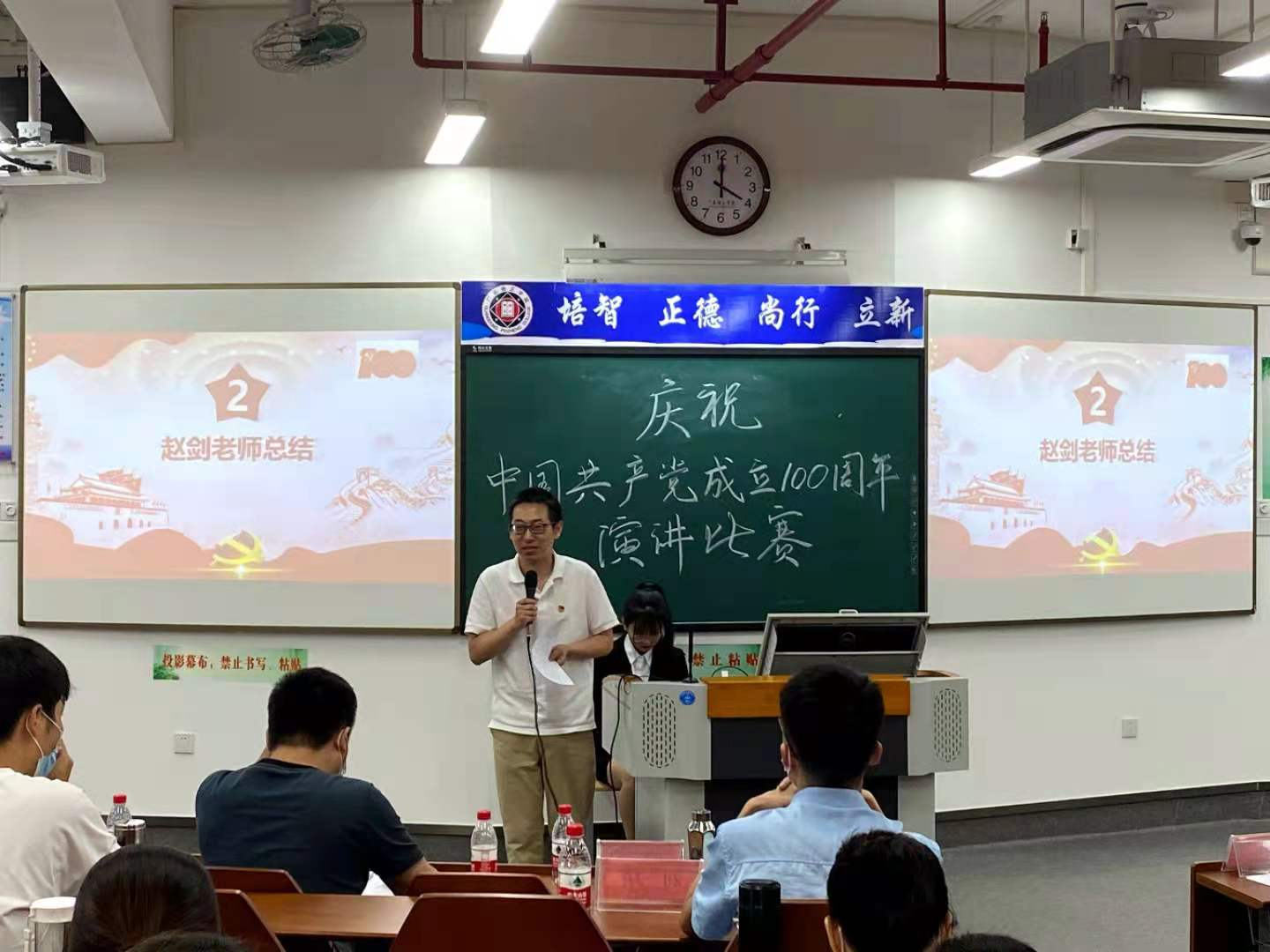 赵剑老师对比赛进行了点评。赵老师首先对马克思主义学院的大力支持、指导老师及选手的辛勤付出、政史研究协会的精心承办表示感谢。他说,赶上党的百年华诞,是我们这一代人的荣幸,在距党的生日还有一个月的时间里举办比赛,应时应景。整个演讲比赛主题突出,语言流畅,形式新颖,引起了思考,唤起了共鸣。对于个别选手的紧张表现,他建议大家要打磨内容、脱稿录音、对镜练习。