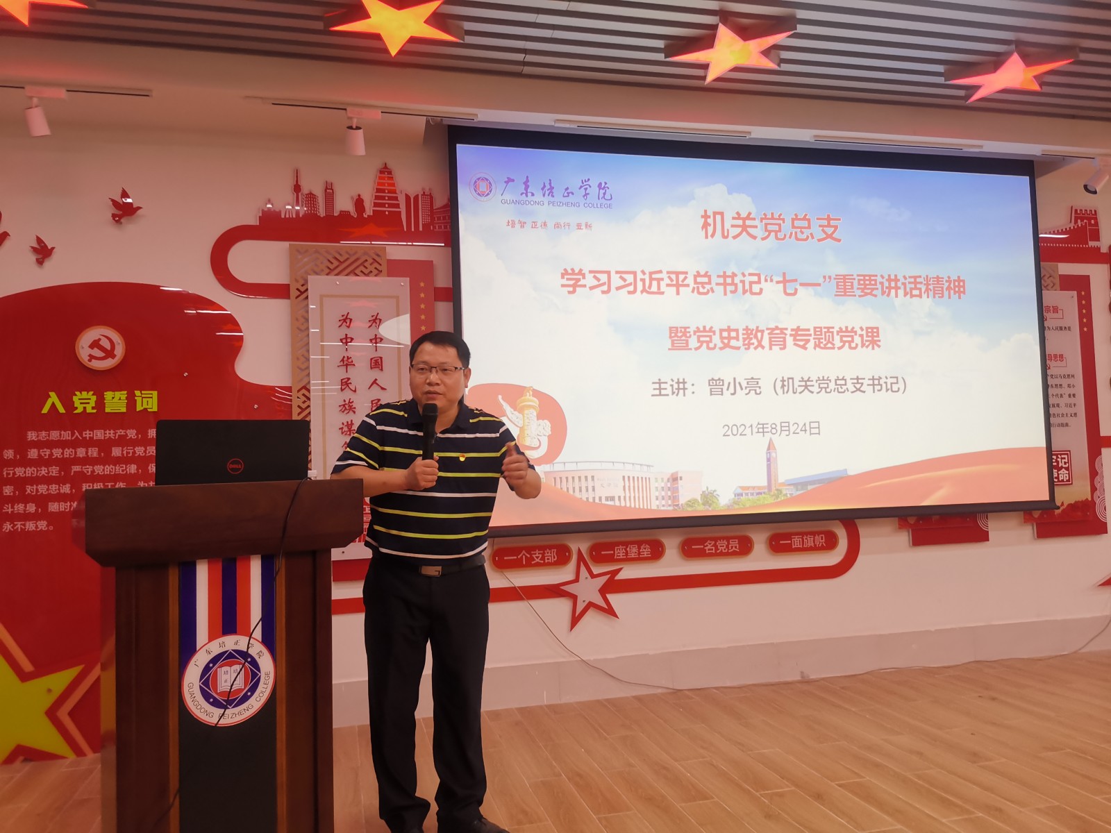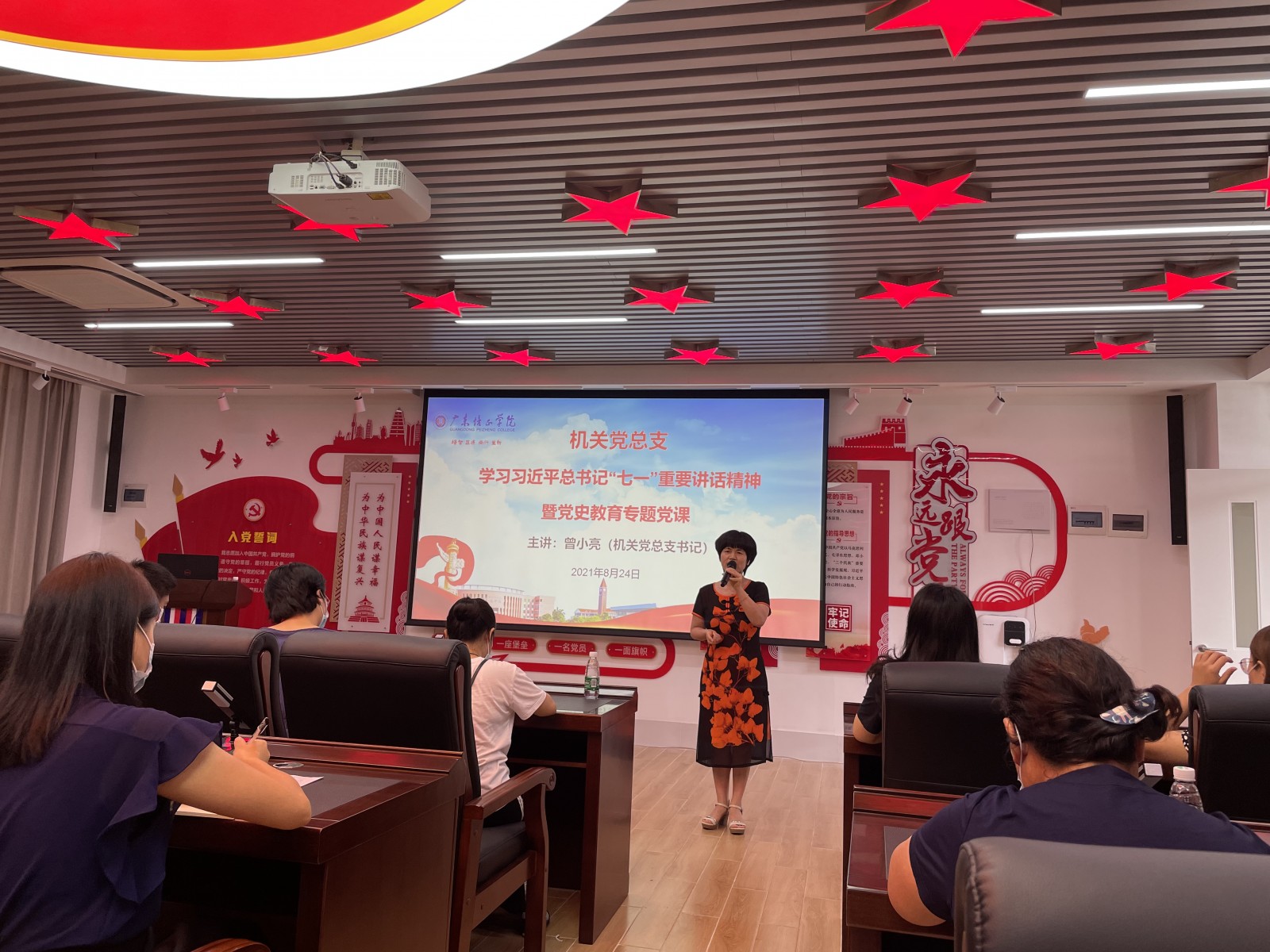 本网讯(机关党总支 杨敏)新学年,新气象,党史学习教育永远在路上。9月1日上午10点,机关党总支学习习近平总书记“七一”重要讲话精神专题党课专题党课在五教党建文化中心举行,机关党总支各支部党员共80多人参加了专题党课学习。