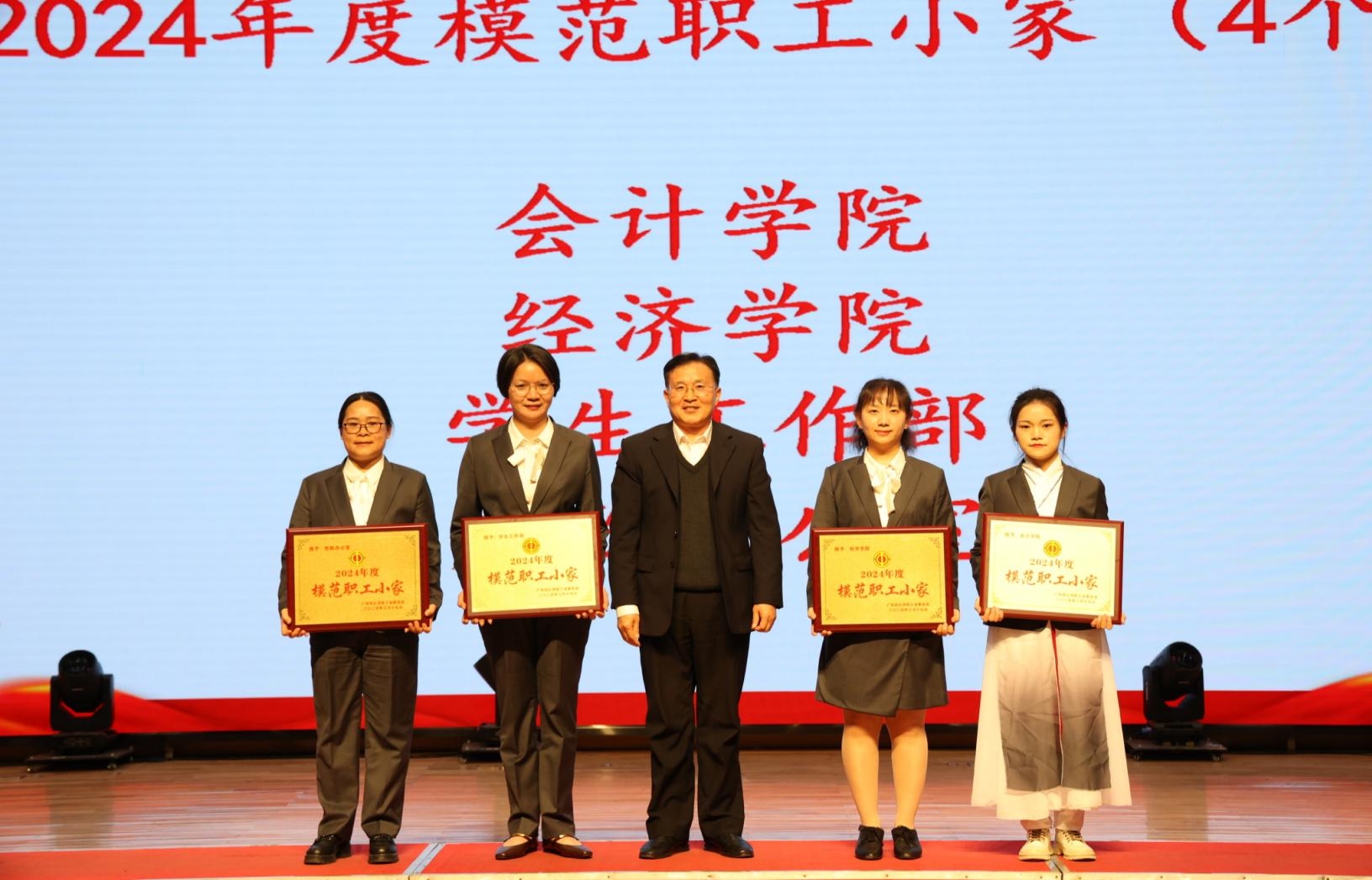 工会主席刘晓瑜宣读了获得工会2024年度优秀集体和优秀个人名单,共有4个模范职工小家、10名优秀工会工作者和99名优秀工会积极分子受到表彰。颁奖仪式上,武电平书记为2024年度 “模范职工小家”颁发奖牌,黄弢校长为2024年度“优秀工会工作者”颁发荣誉证书。