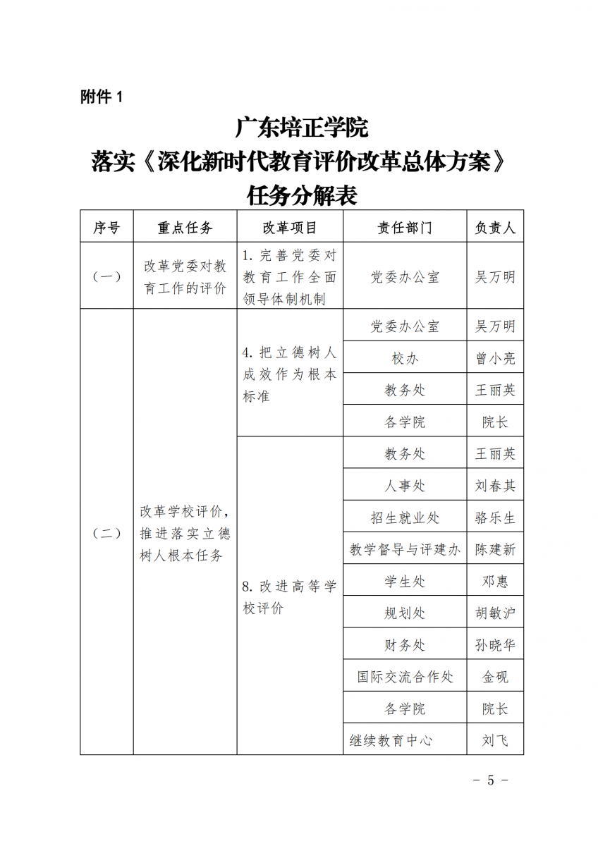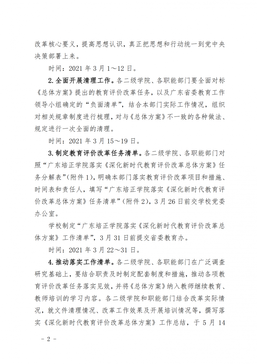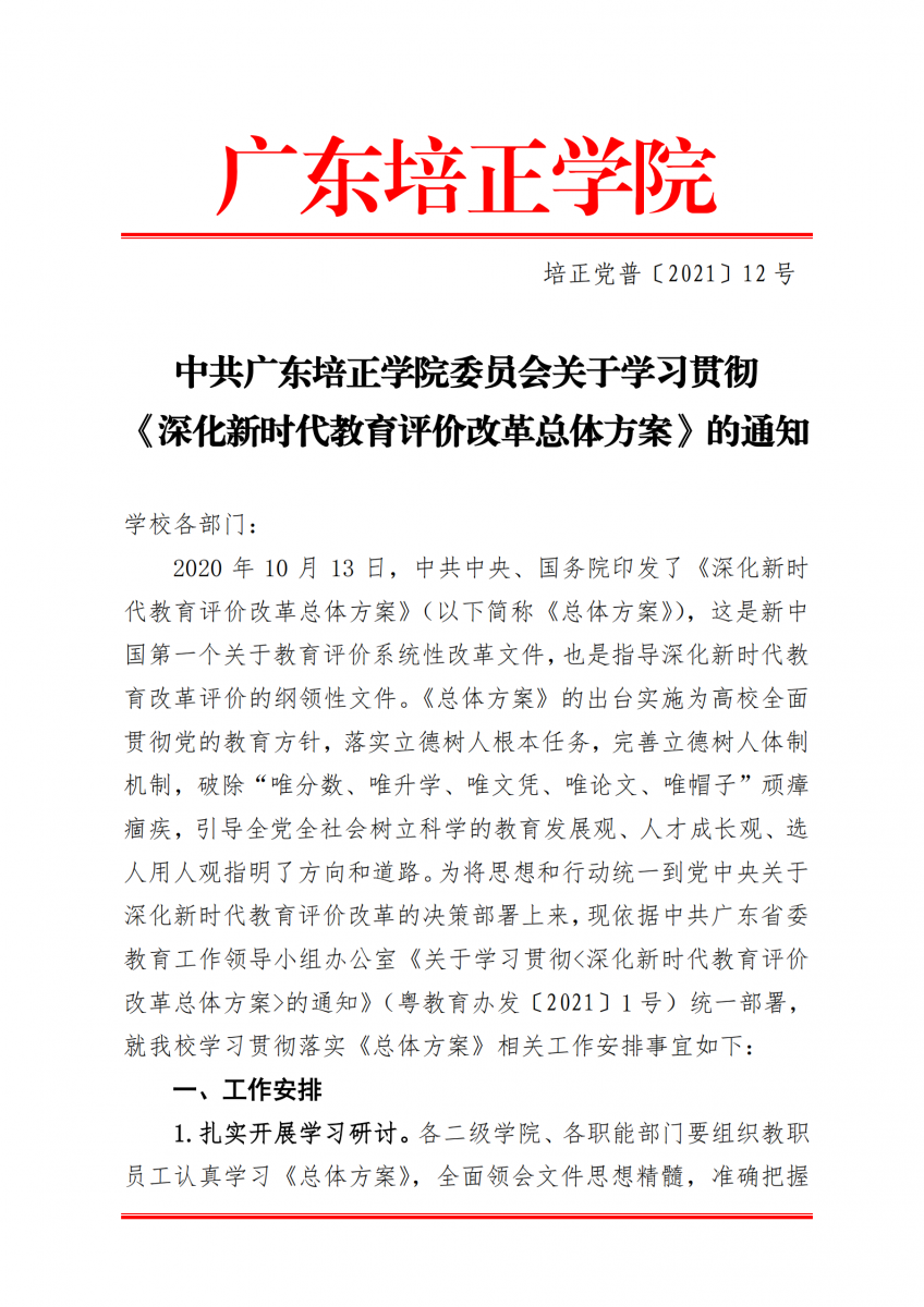中共广东培正学院委员会关于学习贯彻 《深化新时代教育评价改革总体方案》的通知